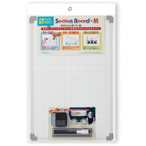 ●25mm方眼の暗線入りだからグラフや文字、イラストが書きやすい●裏面マグネット付属で金属面にも貼れる●うれしいイレーサー付き●縦横両用●可動式ペントレー