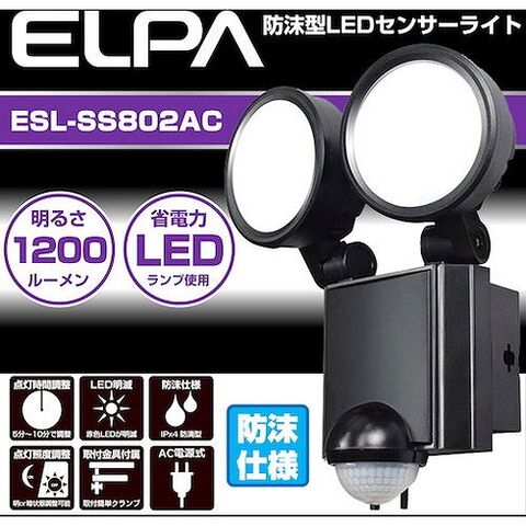 ELPA LEDセンサーライト 使用電球8×2W ESLSS802AC 環境改善用品 防災・防犯用品 防犯用センサーライト【送料無料】