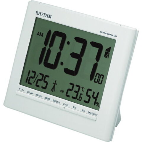 RHYTHM リズム 電波 目覚マシ時計 温湿度計付キ 壁掛ケ可能 白 リズム オフィス 住設用品 オフィス備品 時計【送料無料】