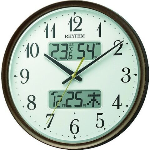 RHYTHM リズム 電波 壁掛ケ時計 温湿度計付キ カレンダー 暗所自動点灯機能 連続秒針 ブラウン φ344x52 8FYA04SR06【送料無料】のレビュー