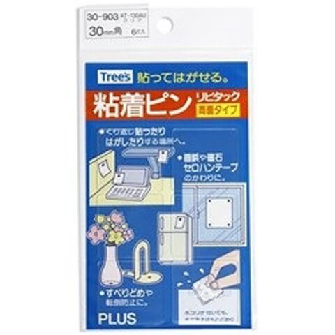 PLUS 30903)粘着ピン リピタック AT-130AU 30mm 角 AT130AU オフィス 住設用品 オフィス備品 フック 画びょう ホルダー式クリップ