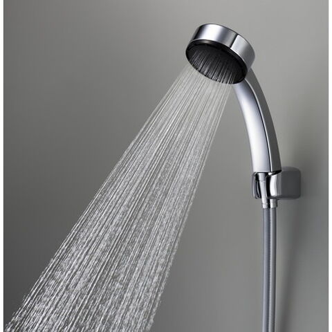 ●高級感のあるメッキ調のシャワヘッド、メタリックホースで浴室をおしゃれに。●シルバーメタリックのシャワーホース付き。