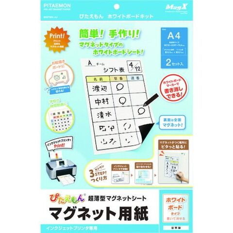 ●インクジェットプリンターでそのまま印刷できる超薄型マグネットシートです。●付属のフィルムを貼ってボードマーカーで書き消し可能です。
