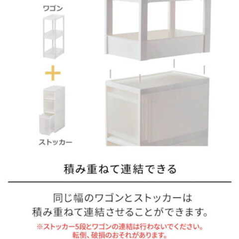 ●ワゴンはストッカーの上に1台まで積み重ね可能です。(ストッカー5段タイプは不可)