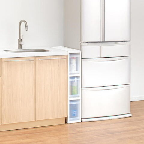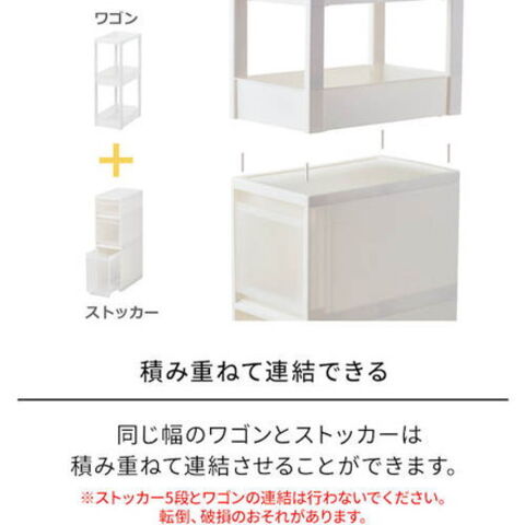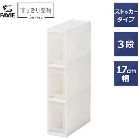 ●同じ幅のスキピタワゴンと連結可能です。●引出しは操作しやすい様に上・下に取手付です。●ストッカー引出し内側または前面外側にセット可能な小物ポケット(1個)付きです。●スタイリッシュなホワイトカラーで、キッチンや洗面所などあらゆるシーンでのストック収納におすすめです。●幅17cmのスリムタイプです。