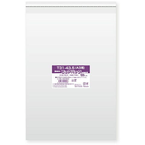 スワン OPP袋 ピュアパック テープ付き 31-43.5(A3用) 100枚入り 6798330 梱包用品 梱包結束用品 ポリ袋