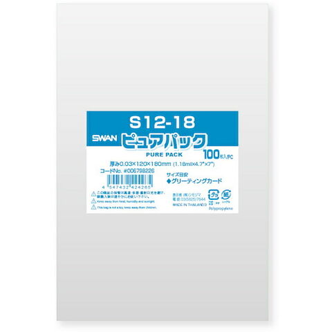 スワン OPP袋 ピュアパック テープなし 12-18 100枚入り シモジマ 梱包用品 梱包結束用品 ポリ袋 006798226