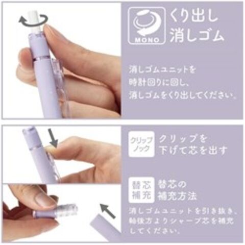 ●ペン先を下に向けて上下に振るだけで芯がでます。