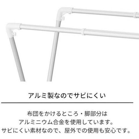 ・軽量で見た目も良質なアルミパイプ仕様です。・室内仕様に特化した軽量コンパクトサイズです。・布団を掛けやすく、地面に着きにくいしっかり干せる高さ設定です。・工具不要の簡単組立です。