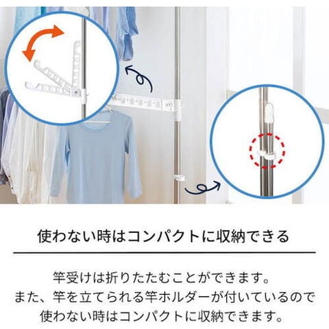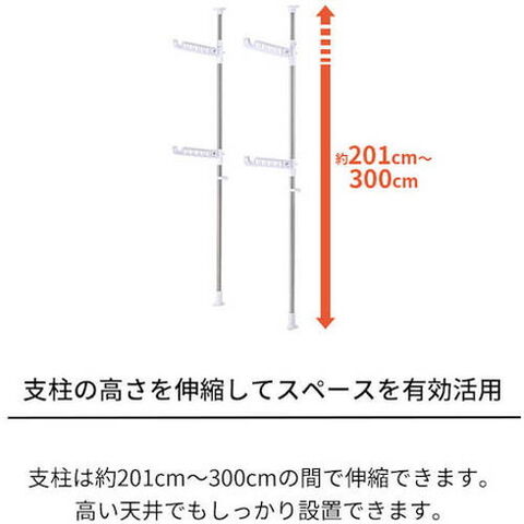・室内仕様に特化した軽量コンパクトサイズです。・布団を掛けやすく、地面に着きにくいしっかり干せる高さ設定です。・工具不要の簡単組立です。・室内で使える突っ張り式の物干しです。・ネジクギなどを使わず簡単に設置できるので、床や天井にも優しい設計です。