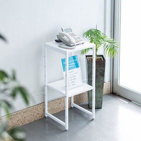 ●受付の電話台や消毒液台、プロジェクター台としても使いやすいサイズです。●中棚が付属し、置くものに合わせて高さ変更が可能です。●W350×D350mmの場所を取らないマルチスタンドです。