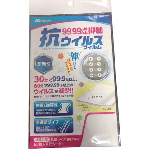 ●そのまま角型のボタンに貼付出来ます。●貼付後30分で99.9%ウイルスを減少させます。●半透明の為、目立ち過ぎず貼付場所を選ばないです。●湾曲部や凹凸部にも貼りやすく、破れにくくなっています。●半透明で、貼る場所を選びません。