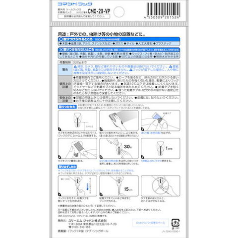 ●屋外用に開発された「耐UV粘着タブ」で取り付ける屋外用のコマンドフックです。