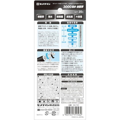 セメダイン 瞬間接着剤 3000耐水・耐衝撃 P20g(高粘度型) CA-110 CA-110 セメダイン(株) 接着剤・補修剤 瞬間接着剤