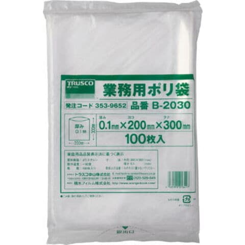 TRUSCO 厚手ポリ袋 縦300X横200Xt0.1 100枚入 透明【B-2030】 (梱包結束用品・ポリ袋)