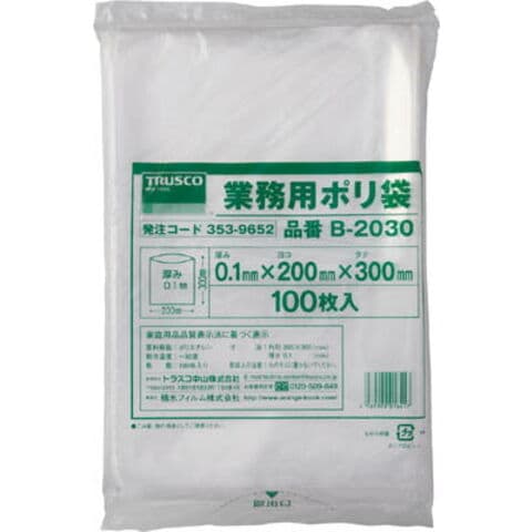 TRUSCO 厚手ポリ袋 縦340X横230Xt0.1 100枚入 透明【B-2334】 (梱包結束用品・ポリ袋)