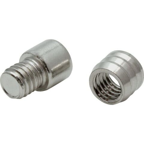 ●色:メッキ●品名:ケルダボ●タイプ:ねじ込み●ねじ部長さ(mm):6●A(mm):8●B(mm):6●C(mm):6●D(mm):6●E(mm):6.4●F(mm):8