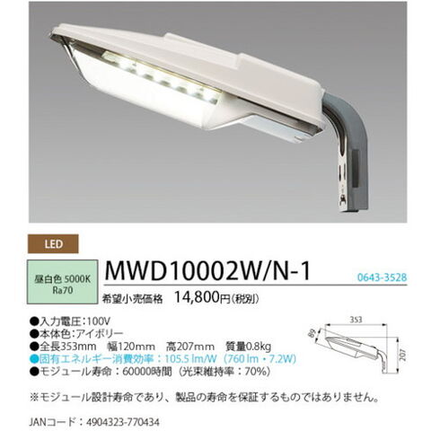 ホタルクス LED防犯灯 防雨型 昼白色760lm MWD10002WN1 環境改善用品 環境改善用品 防災 防犯用品 防犯用センサーライト【送料無料】