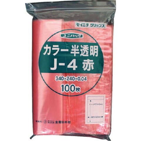 セイニチ 「ユニパック」 J-4 赤 340×240×0.04 100枚入【J-4-CR】 (梱包結束用品・ポリ袋)