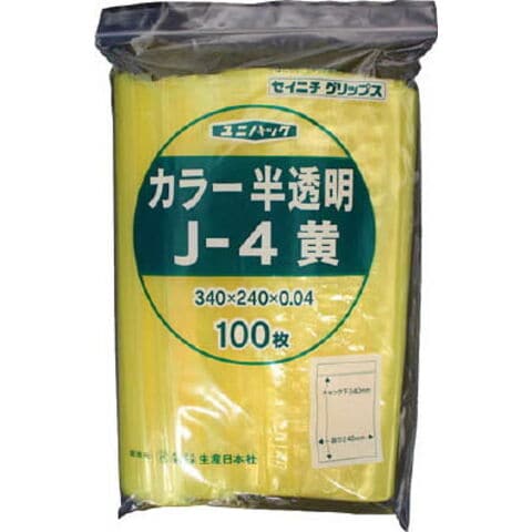 セイニチ 「ユニパック」 J-4 黄 340×240×0.04 100枚入【J-4-CY】 (梱包結束用品・ポリ袋)