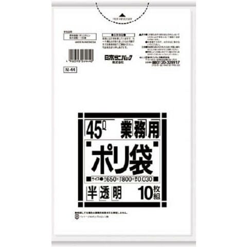 ●スタンダードな業務用厚口ポリ袋シリーズです。●縦(mm):800●横(mm):650●厚み(mm):0.03●容量(L):45●色:白半透明●袋入数(枚):10●低密度ポリエチレン(LLDPE)
