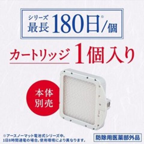 ●蚊成虫の駆除、忌避、侵入阻止●効果持続目安:1日8時間通電で約180日間●効果範囲目安:4.5~10畳の屋内で使用 蚊成虫の忌避:屋外で携帯するか足元に設置して使用●適合害虫:ハエ蚊●色:赤青白●香り:無香料●使用目安:1日8時間通電で約180日間●容量(g):35●効果持続期間:1日8時間通電で約180日間(延べ約1440時間)●トランスフルトリン 375mg/個●器具に針金やピンなどを差し込まないでください。