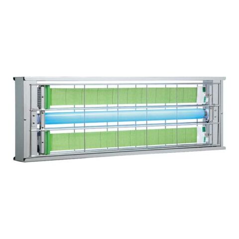 ・はく離紙タイプの一般的な虫とり紙に比べて約2倍の捕獲力です。・格子の取付けが簡単です。・電撃殺虫器で捕れない小さな虫も捕獲できます。・使用時で2年間、未使用(カートリッジ内収納)なら5年の他社にない長寿命の捕虫テープです。・電撃殺虫器のように設置場所を法律で制限されていないので、設置場所を選びません。・通常の蛍光灯の130倍の誘虫効果のあるライトを搭載しています。・捕虫テープで飛翔昆虫を確実に捕獲するため、電撃殺虫器のような耳障りの悪い高圧電流によるバチバチという音や死骸の飛散もなく安全無害です。