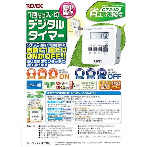 リーベックス 一回だけ「入/切」デジタルタイマー CT24D CT24D 測定・計測用品 工業用計測機器 ストップウォッチ・タイマー【ポイント10倍】