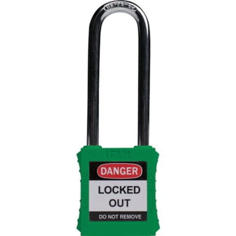 イファム ロックアウト用南京錠 スチール製シャックルツル長 緑 IFAM社 金物 建築資材 建築金物 鍵【送料無料】