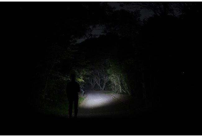 ・点灯時間:2時間(最大)/4時間(強)/7時間(中)/37時間(弱)・照射距離:152m(最大)/128m(強)/93m(中)/38m(弱)・点灯パターン:最大-強-中-弱-OFF・使用電池:単3アルカリ電池×2本(テスト用電池付属)