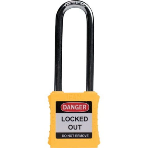 イファム ロックアウト用南京錠 スチール製シャックルツル長 黄 IFAM社 金物 建築資材 建築金物 鍵【送料無料】