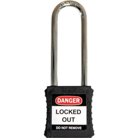 イファム ロックアウト用南京錠 スチール製シャックルツル長 黒 IFAM社 金物 建築資材 建築金物 鍵【送料無料】