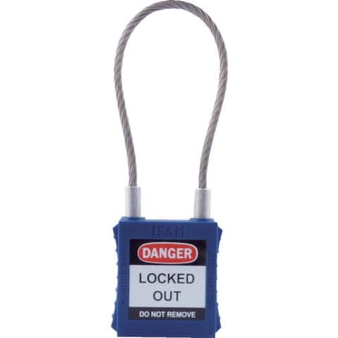 イファム ロックアウト用南京錠 スチールケーブル製シャックル 青 IFAM社 金物 建築資材 建築金物 鍵【送料無料】