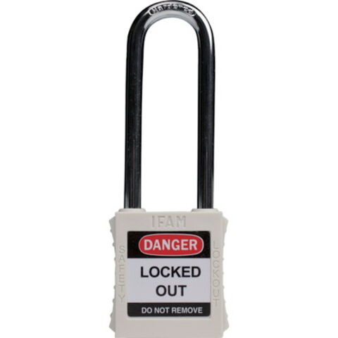 イファム ロックアウト用南京錠 スチール製シャックルツル長 白 IFAM社 金物 建築資材 建築金物 鍵【送料無料】