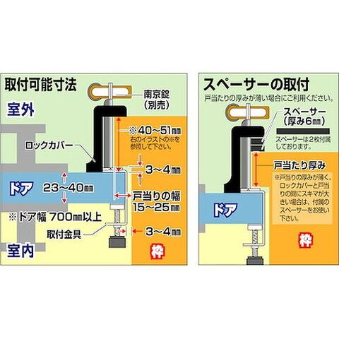 ●建物にキズを付けずに、南京錠で扉を施錠できます。