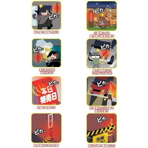 ●電池寿命:1日10回(20秒間/1回)動作時、光だけでは約6ヶ月、光とアラーム音(最大)では約3ヶ月 (動作回数により変動する)