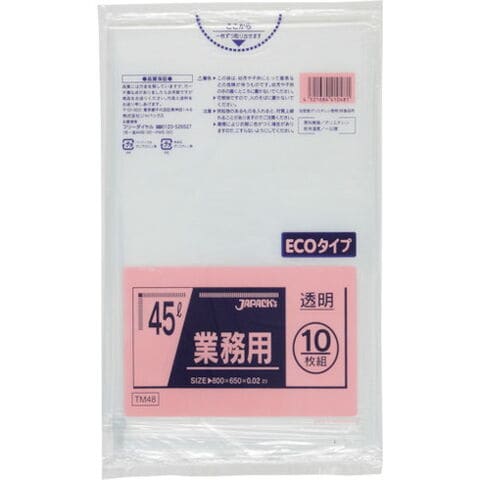 ジャパックス メタロセン配合ポリ袋 45L透明10枚0.02 ジャパックス TM48 清掃 衛生用品 清掃用品 ゴミ袋