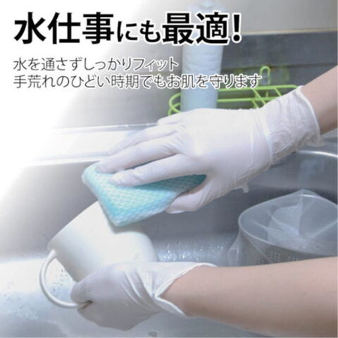 ●色:ホワイト●サイズ:M●全長(cm):24.0●手のひら周り(cm):20.4●厚さ(mm):約0.06~0.10(手のひら)/約0.08~0.12(指先)●粉(あり・なし):なし●すべり止め:あり●食品衛生法:適合