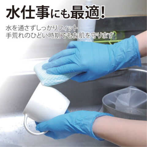 ●色:ブルー●サイズ:L●全長(cm):24.0●手のひら周り(cm):21.2●厚さ(mm):約0.06~0.10(手のひら)/約0.08~0.12(指先)●粉(あり・なし):なし●すべり止め:あり●食品衛生法:適合