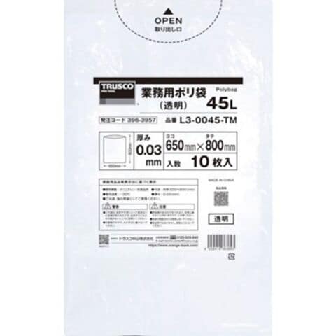 TRUSCO 業務用ポリ袋0.03X90L(透明)10枚入り L30090TM 梱包用品 梱包結束用品 ポリ袋【ポイント10倍】