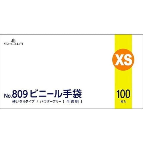 ショーワ ビニ-ル使イ捨テ手袋 NO809 ビニ-ル手袋 粉ナシ 100枚入 XSサイズ 半透明 1箱 NO809-XS ショーワグローブ(株) 作業手袋 使い捨て手袋