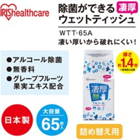 IRIS 288656 除菌ができるウエットティッシュ凄厚 詰め替え用 アルコールタイプ 65枚 アイリスオーヤマ 清掃 衛生用品 労働衛生用品 除菌衛生用品 WTT-65A