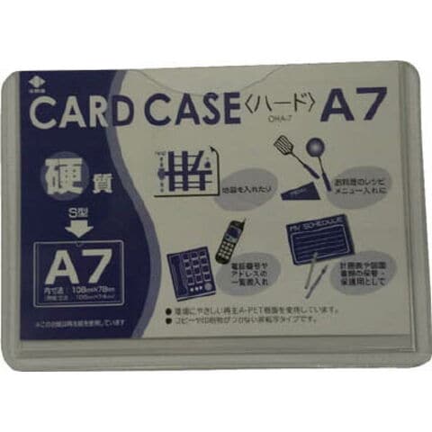●環境に優しい再生PET樹脂製です。●透明度が高く、印刷物の転写がありません。●タイプ:A7●タイプ:A7●規格:●タイプ:A7●内形寸法(mm)縦×横:78×108●硬質タイプ●厚み:0.4mm