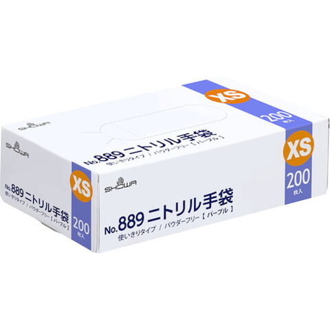 ショーワ No.889 ニトリル手袋 200枚入 XSサイズ パープル 1函 ニトリルゴム使イ捨テ手袋 粉ナシ NO889-XS ショーワグローブ(株) 作業手袋 使い捨て手袋