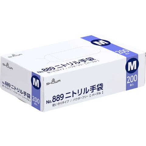 ショーワ No.889 ニトリル手袋 200枚入 Mサイズ パープル 1函 ニトリルゴム使イ捨テ手袋 粉ナシ NO889-M ショーワグローブ(株) 作業手袋 使い捨て手袋