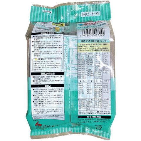 ●品名:そうじっこMC-119(12袋内箱)●幅(mm):290●奥行(mm):200●高さ(mm):2.5●タイプ:各社共通●-●集じん容量(L):※掃除機による