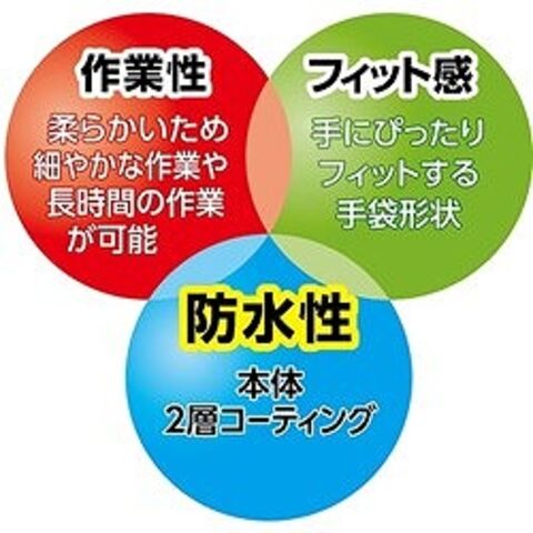 ●また、薬品・溶剤等によっては手袋被膜を透過するため、人体に影響を与える液体を取扱う作業には使用しないでください。