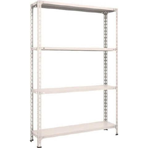 ●4方からの出し入れがしやすく、棚板の上下面4面は振れ止め金具付で丈夫です。●棚板は当社独自のW折り曲げ加工により強度が20%アップしています。(3V・3Xは除く)●間口(mm):1200●奥行(mm):300●組立目安:2人30分●色:ネオグレー●高さ(mm):1800●棚段数(段):4●有効間口(mm):1126●棚板調整ピッチ:50mm●外寸間口(mm):1215●外寸奥行(mm):315●外寸高さ(mm):1804●有効間口寸法は、間口-74mm●色:ネオグレー●均等積載量:100kg/段●最大積載量:1000kg/台●集中荷重になりますと耐荷重能力は半減します。必ず均等に荷重を分布させてご使用ください。