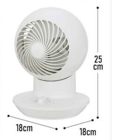 ●電源(V):単相100●消費電力(W)(50/60Hz):22/20●ハネ径(cm):12●色:ホワイト●幅(mm):180●奥行(mm):180●高さ(mm):250●電源コード長さ(m):約1.4●首振り:左右自動90°●風量調節:3段階●適合床面積:~8畳●リモコン有無:無し●タイマー:なし●標準消費電力料金(50Hz):0.6円/h●標準消費電力料金(60Hz):0.54円/h●上下角度調節(手動):115°●最大風量(50/60Hz):5.9[[M3]]/min/6.6[[M3]]/min