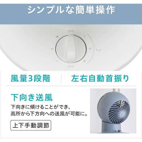 ●コンパクトなのに8畳の広さに対応するパワフル送風のサーキュレーターです。●下向きにも送風できるので、高所からの送風も可能です。